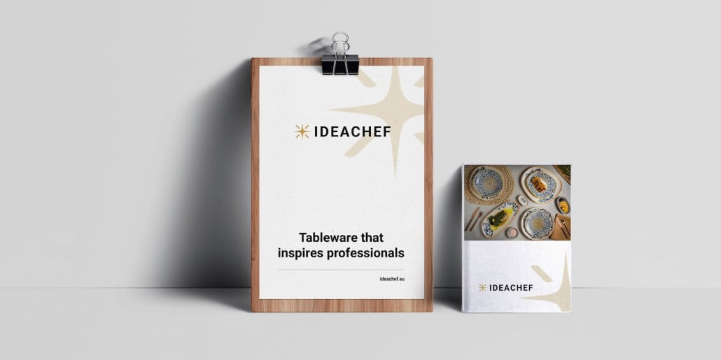 The color palette — gold, black, and white — conveys elegance, certainty, and refinement. The visuals are simple, modern, and well-spaced, designed to keep the tableware pieces in the spotlight. IdeaChef’s identity doesn’t shout; it convinces through its discretion and confidence.